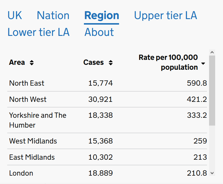 It was very apparent, the infection-rate graphs for the UK had definite hot spots, that things were much more localised than the blanket England-wide government plans have allowed for. But travel-to-work areas don't fit well to the areas shown in maps, and it hasn't lasted.