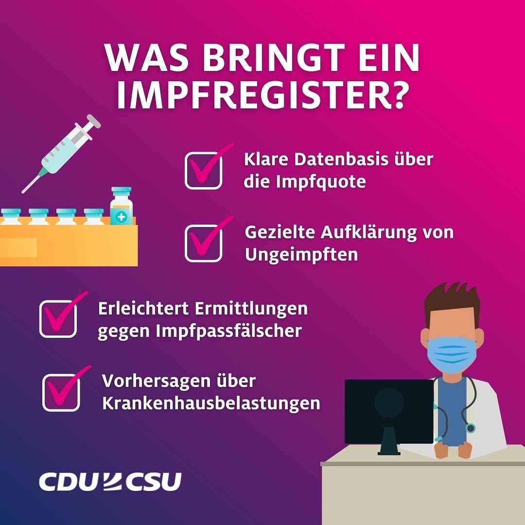 #Impfvorsorge statt#Impfpflicht! Die Unionsfraktion liefert ein Vorsorgekonzept für mögliche weitere#Corona-Wellen. Ein wichtiger Baustein des Antrags ist neben dem abgestuften Impfmechanismus und einer verstärkten Impfkampagne ein Impfregister: https://dserver.bundestag.de/btd/20/009/2000978.pdf …pic.twitter.com/s0pMqIyuu9