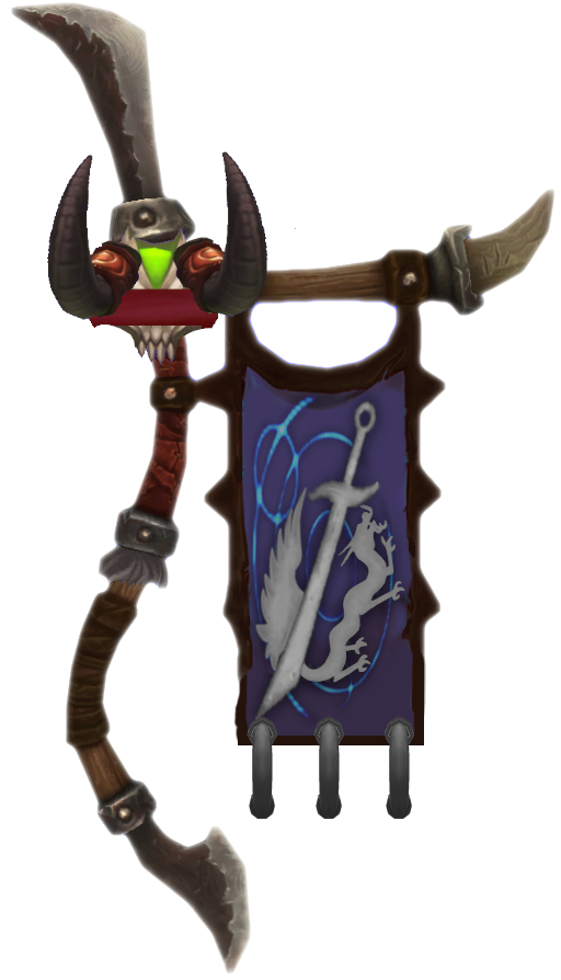 Somedays when you can't draw, you bash some in-game assets together instead. Vel already has a 'Trainee' Burning Blade Banner (cause Elves need to work harder to train like an Orc), but someone asked me what her Blademaster's Banner would look like one day! #Warcraftpic.twitter.com/FKiqENQhqQ