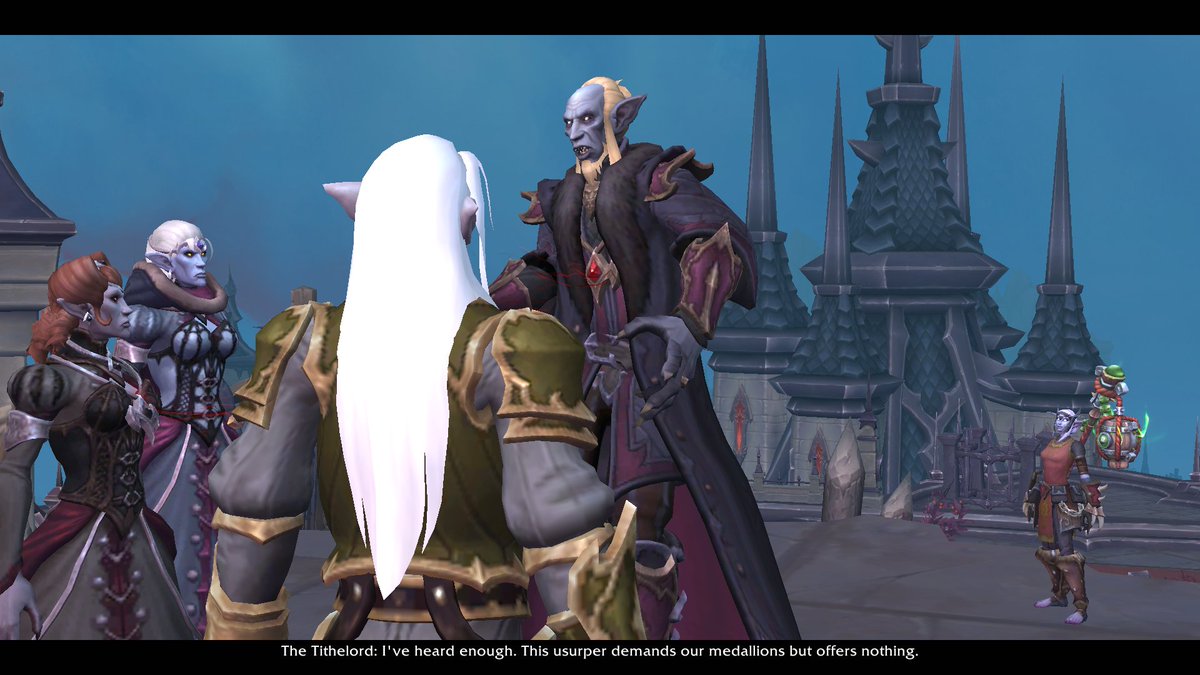 “This usurper-“ *Looks behind him as she smiles and waves mindless at him, not knowing what is happening before her.* “demands our medallions butoffers nothing!”