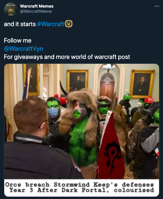 This... is on another fucking level. This was a terrorist attack that happened less than a day ago. A woman fucking DIED. An entire country was put to shame, and somehow the Warcraft Memes account thought it was okay to post, even if someone else made it.pic.twitter.com/1wrx0ayrvP