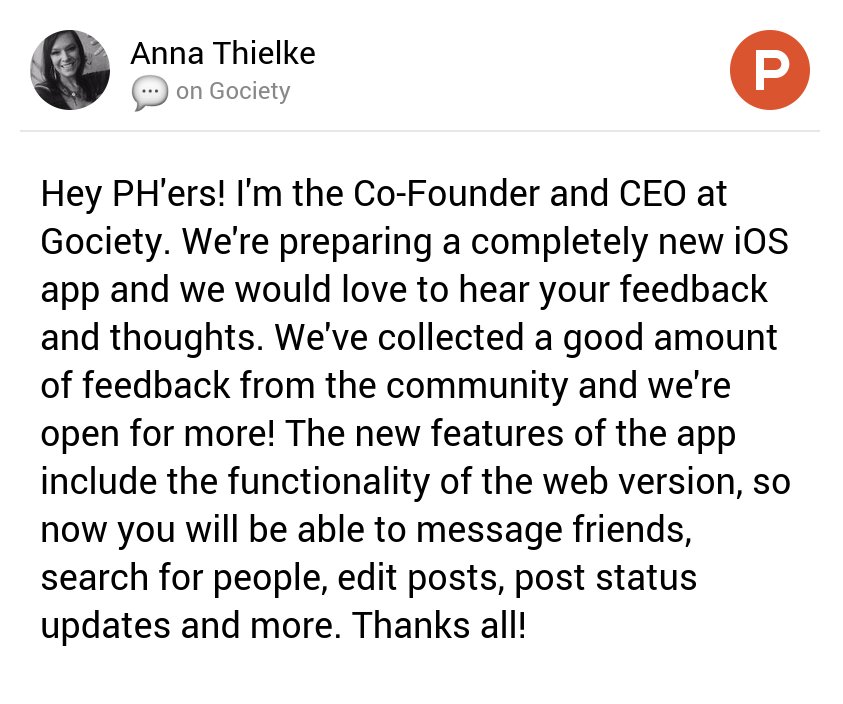 @anujadhiya - Gociety: Social network for people who love the outdoors https://www.producthunt.com/tech/gociety pic.twitter.com/YgcmbaLOAg