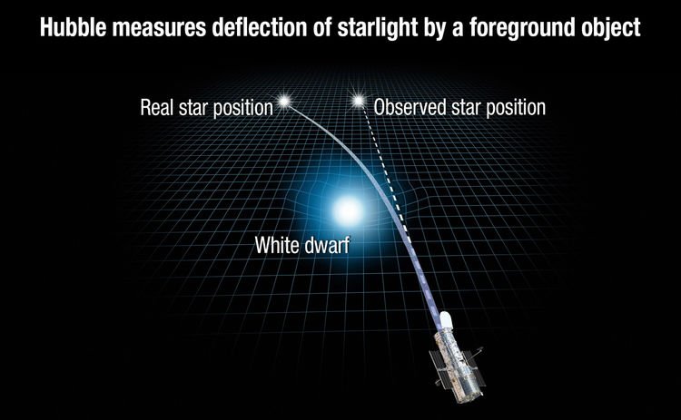 "Einstein was right (again)! Astronomers watch as a star’s gravity bends light from another star."