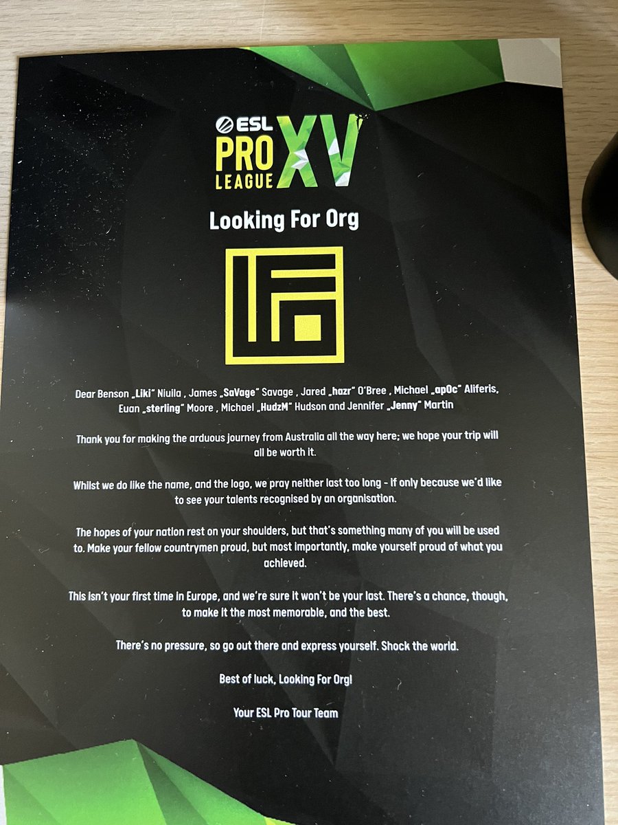 thanks esl been the most amazing event and special thanks to all the player managers. Made us all feel at home even without a org