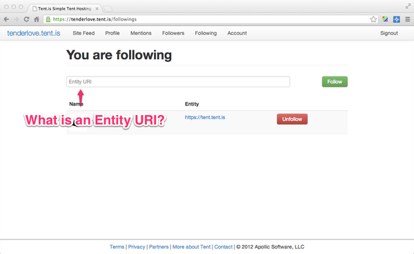 I set up tent, but I don't know what "Entity URI" is. :'(pic.twitter.com/En1pIMy5