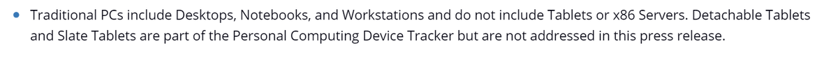 IDC v Gartner do confusingly different counts. I like Gartner for PCs (b/c it is actual PCs, Win & Mac x86) and IDC for tablet (ARM tablets). Where Win32 ARM devices fit could be interesting down the road. I view them as PC substitutes. IDC (1), Gartner (2). IDC Tablet (3)pic.twitter.com/b8V4b9VURl