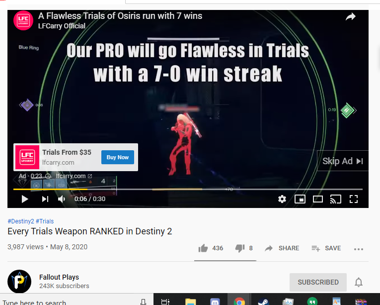 Appreciate the heads-up, but sadly (at least to my knowledge), YT-ers have 0 control over what ads get put on their videos. I'd imagine that YT's thought process is 'oh, a DESTINY based advertisement we're being paid to run? put it on D2 content'https://twitter.com/Ffom_Shah/status/1258790095936782338 …