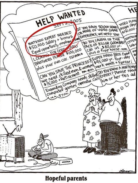 Remember life is full of unknowns and people who will say “you can’t.” I was reminded of this comic my dad put on the fridge when I was little: meant to joke about playing video games vs. studying for a “real job.” Then I got a job @IGN as a @Nintendo Expert.pic.twitter.com/qzxmcx2urT