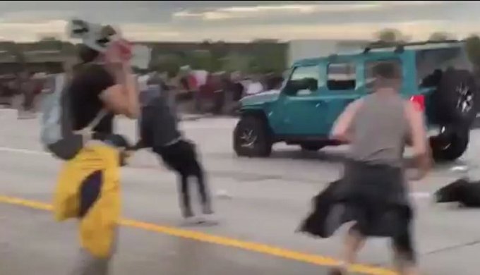 A little analysis shows that the jeep had its windows rolled up. The shooter was probably in the crowd and fired at the jeep, which had a flat tire.pic.twitter.com/HEDqQ9425p