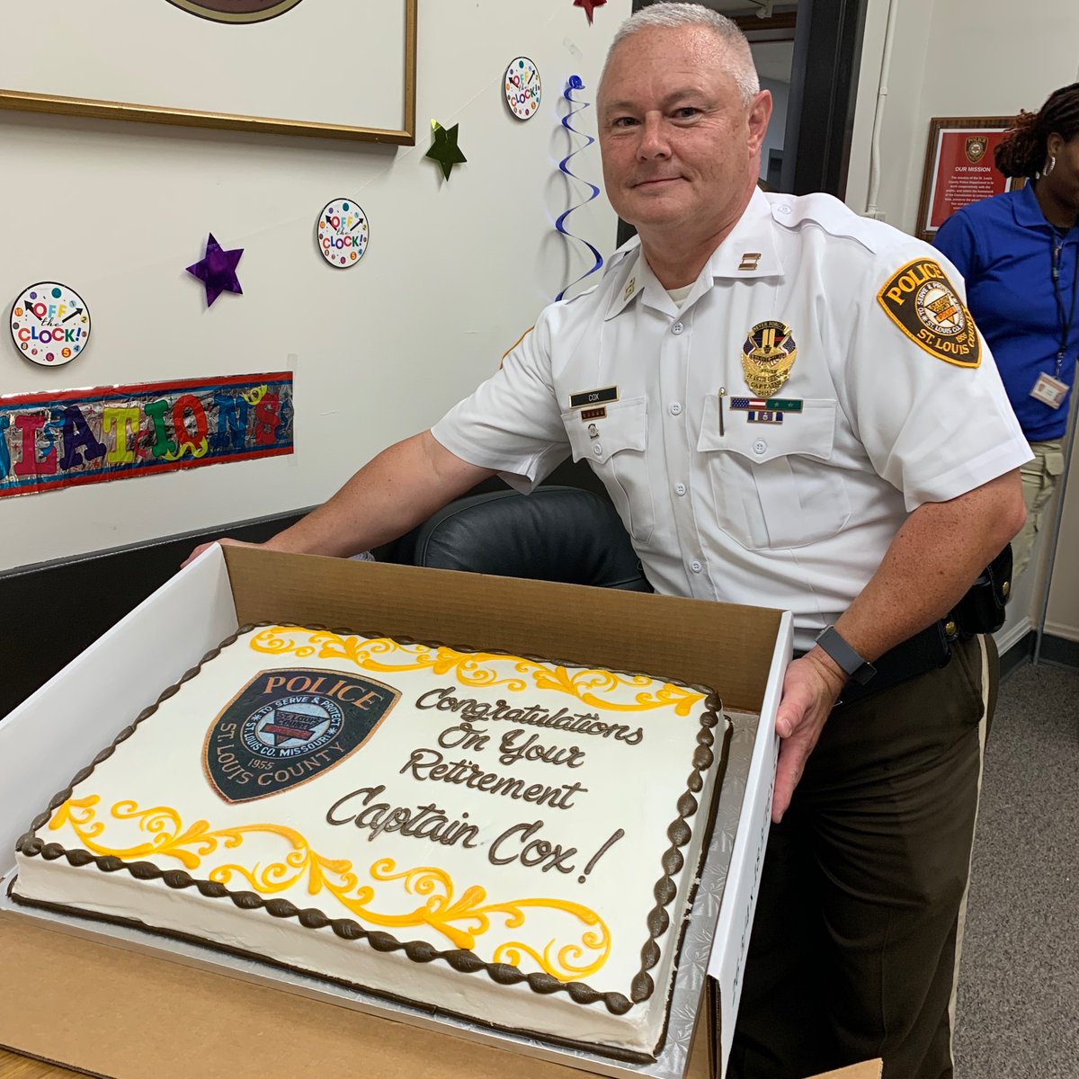 Congratulations to Captain Mark Cox for a great career. We hate to see you go, but we appreciate your service to the citizens of St. Louis County. Good luck, Captain!pic.twitter.com/A1PjrYddcw