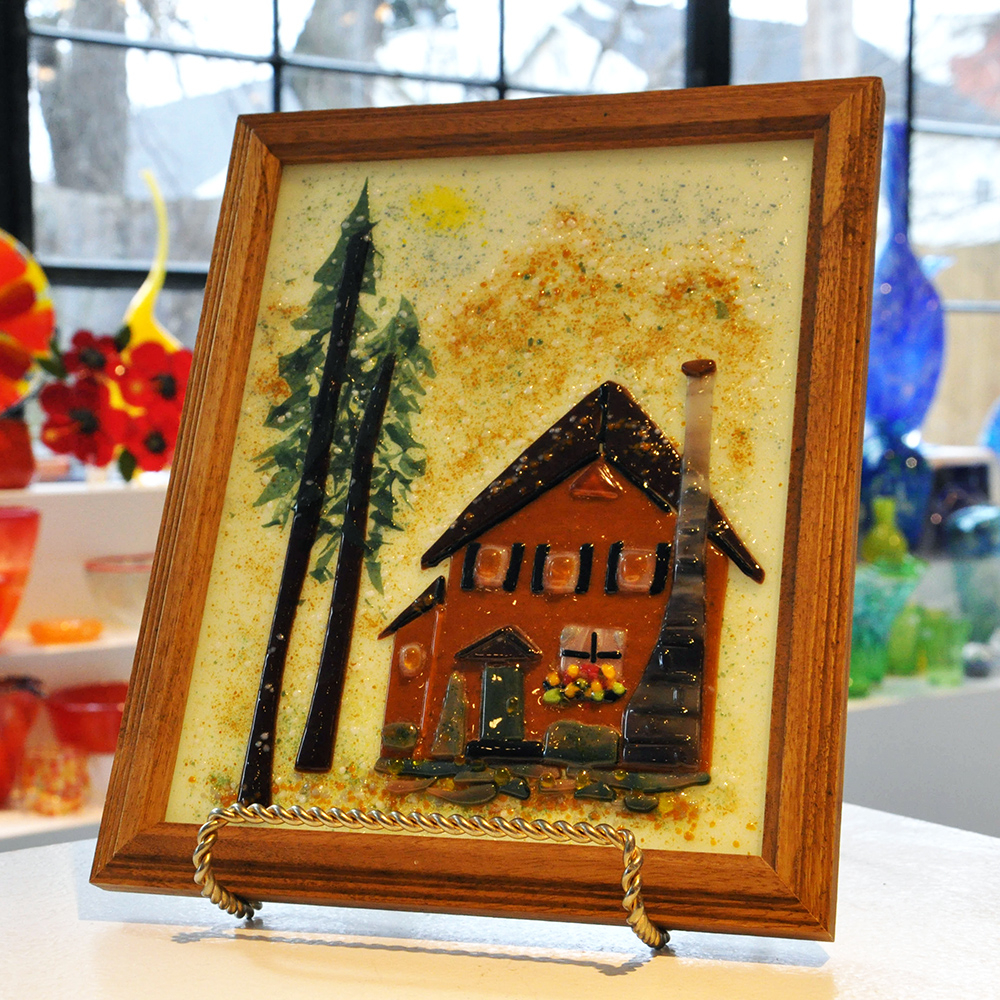 There's no place like home! Sandy's picturesque fused glass scene might just make you want to tap your ruby slippers together... $60. Shop for handmade artwork Mon-Sat 10:00a-5:00p, Sun 11:00a-4:00p.
