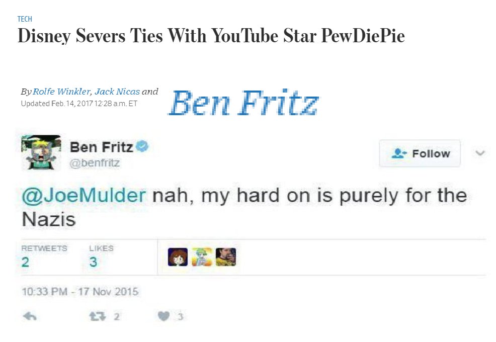 @pewdiepie, we are supporting anti-Semitism, racism, ignorance, etc. He also said that@WSJ is a very reputable news source. How ignorant can you get? The political arguments are more and more ironic daily.@ChrisRayGun@benshapiropic.twitter.com/qg6BtrOhekShow this threadThanks. Twitter will use this to make your timeline better. UndoUndo -