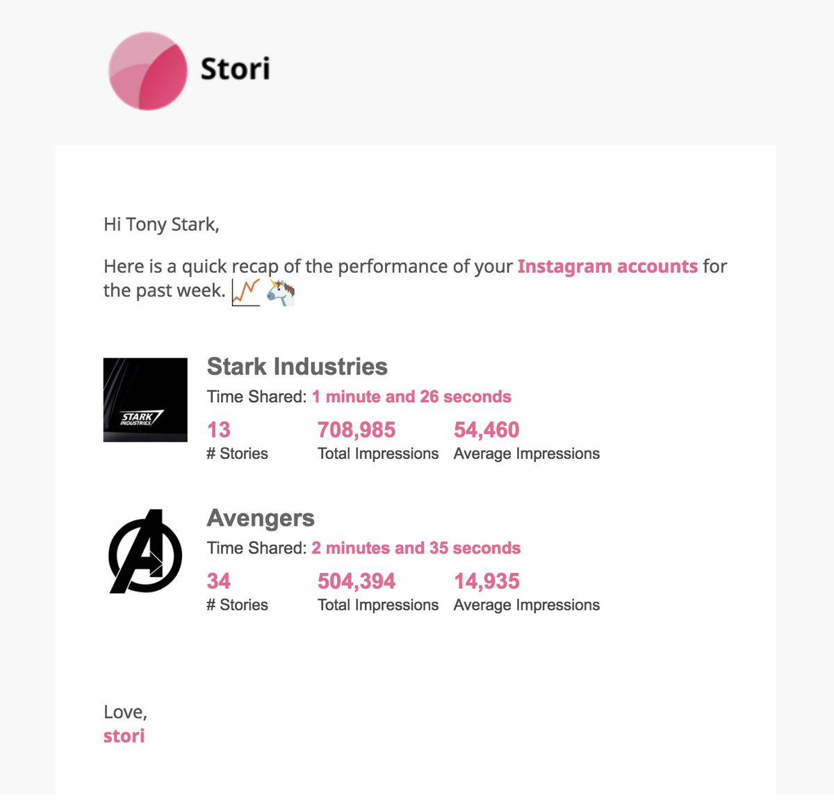 You've got mail! Starting today, every Monday we will deliver a recap of your Instagram accounts' performance to your inboxes!