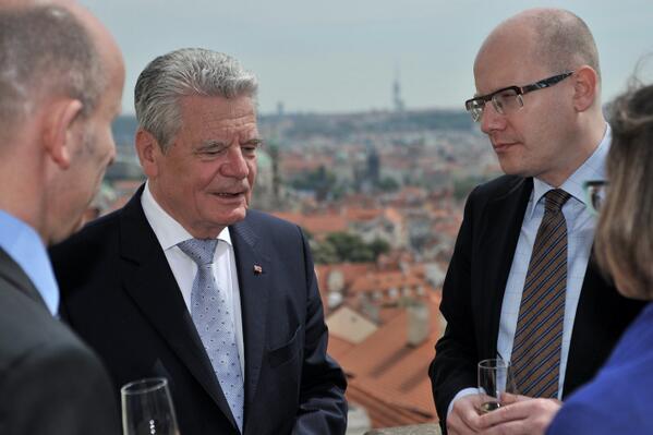 Předseda vlády Bohuslav Sobotka právě jedná s prezidentem SRN Joachimem Gauckem v Hrzánském paláci.pic.twitter.com/23l81A9L6m