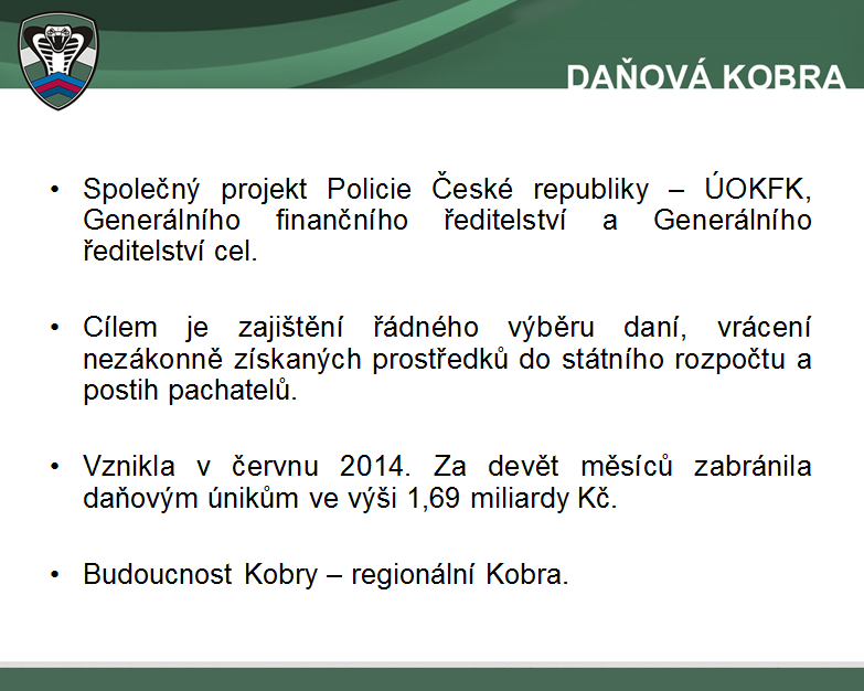 Za 9 měsíců činnosti zabránil specializovaný tým Kobra daňovým podvodům ve výši 1,69 mld. Kč. http://www.vlada.cz/cz/media-centrum/aktualne/premier-sobotka-tym-kobra-zabranil-za-devet-mesicu-danovym-unikum-v-hodnote-1-7-miliardy-korun-127407/ …pic.twitter.com/81AyHSfsai