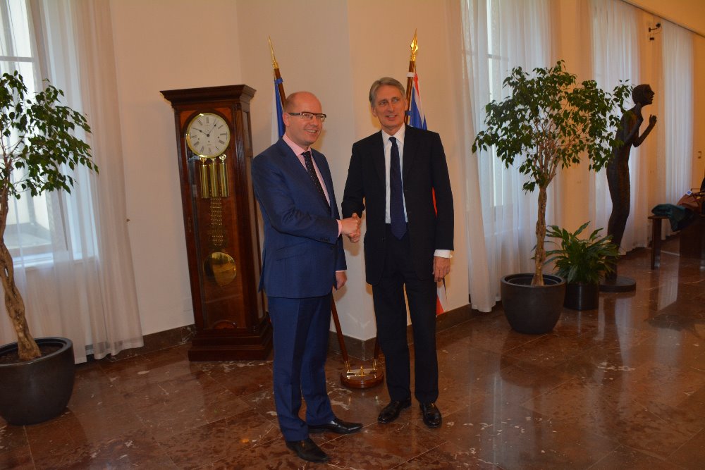 Premiér @SlavekSobotka s britským ministrem zahraničí Hammondem o rozvoji vztahu obou zemí, migraci i budoucnosti.pic.twitter.com/4N2I1v1YdL