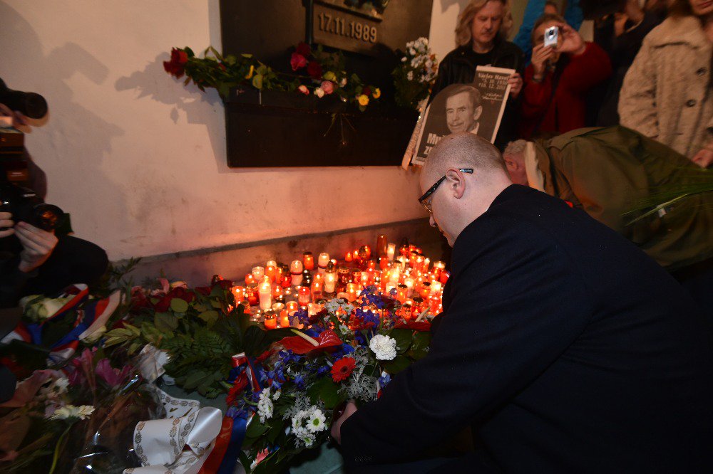 Předseda vlády @SlavekSobotka zapálil svíčku a položil květiny u pamětní desky na Národní třídě. #17listopadpic.twitter.com/vR8anpxfaM