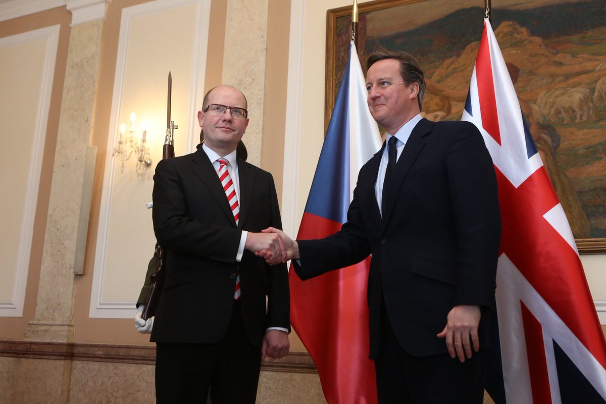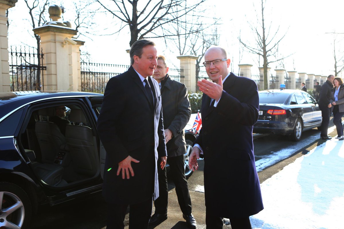 Prime Minister @SlavekSobotka welcomes the PM of Great Britain @David_Cameron in the gardens of the Straka Academy.pic.twitter.com/jLzvCPy6xo