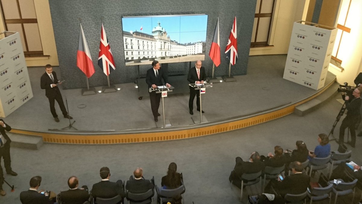 Právě začala tisková konference po jednání @SlavekSobotka a @David_Cameron na Úřadu vlády ČR.pic.twitter.com/zwEcPv03Gm