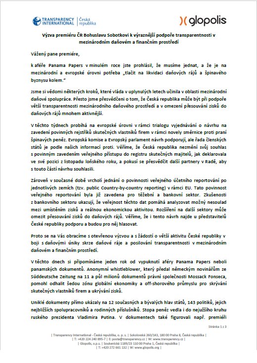 V @Transparency_CZ a @Glopolis se těšíme na Vaší odpověď na náš dopis, jak pomůžete uklidit ČR od daňových rájů http://www.transparency.cz/panama-papers-slavi-sve-prvni-vyroci-co-na-to-nase-vlada/ …pic.twitter.com/womXlSmcCA