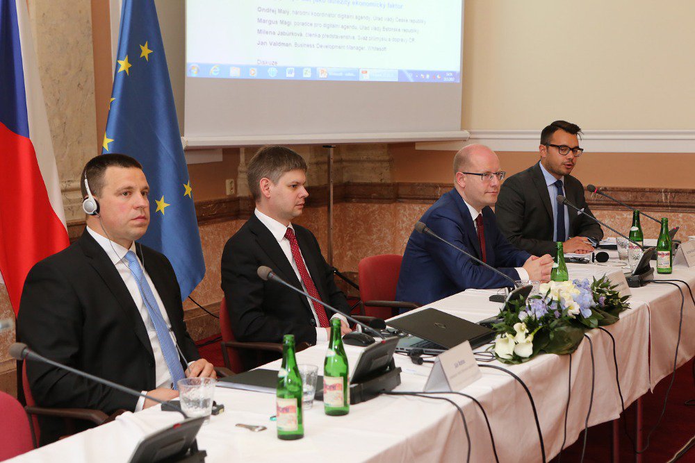 Premiéři České a Estonské republiky diskutovali na semináři o digitalizaci EU, jednotném digitálním trhu a volném toku dat #EUDataFFpic.twitter.com/4mpXmZk4NK