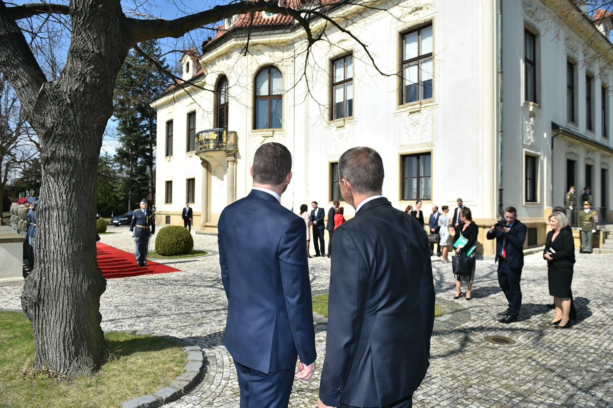 Premiér @AndrejBabis přivítal v zahradě Kramářovy vily slovenského premiéra Petera Pellegriniho při jeho první oficiální návštěvě Prahy.pic.twitter.com/w0PtBT3mLe