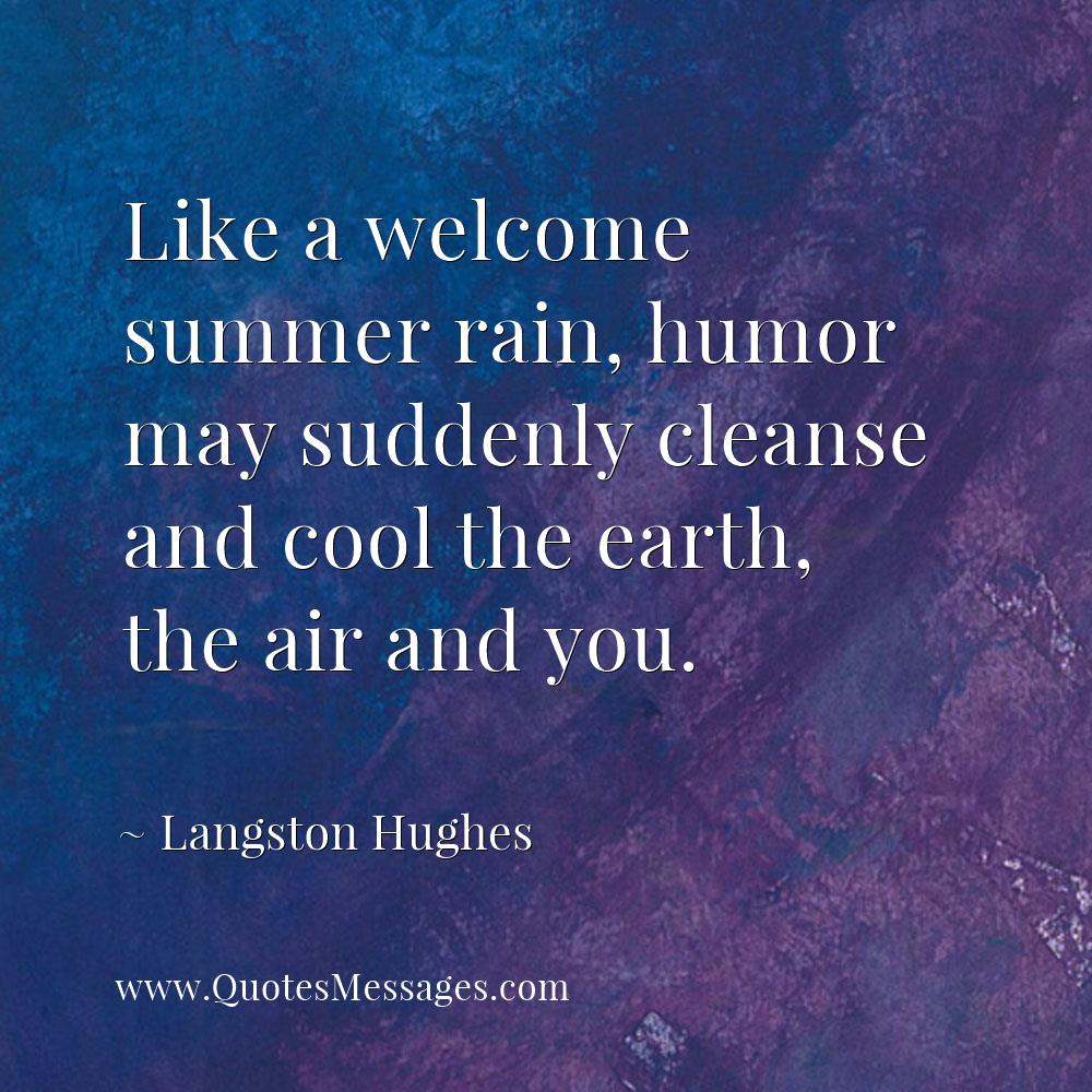 Like a welcome summer rain, humor may suddenly cleanse and cool the earth, the air and you. http://quotesmessages.com/authors/langston-hughes … #quote #LangstonHughespic.twitter.com/vxLniuAB7v