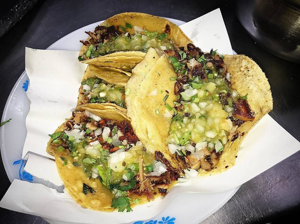 Crispy tripa tacos w/ a side of campechano tacos at our go-to night spot in CDMX |
