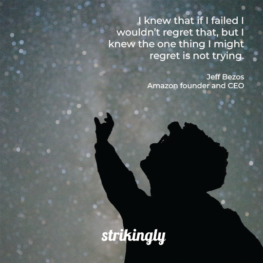 I knew that if I failed I wouldn’t regret that, but I knew the one thing I might regret is not trying. – Jeff Bezos, Amazon founder and CEO