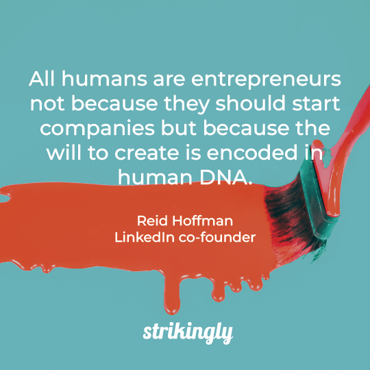 All humans are entrepreneurs not because they should start companies but because the will to create is encoded in human DNA. -Reid Hoffman, LinkedIn co-founder