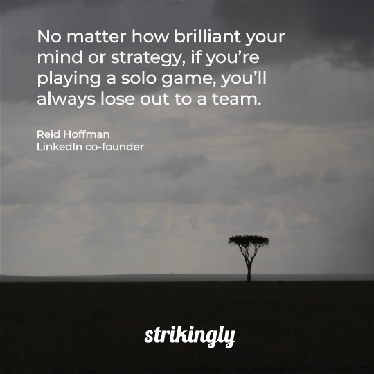 No matter how brilliant your mind or strategy, if you’re playing a solo game, you’ll always lose out to a team. -Reid Hoffman, LinkedIn co-founder