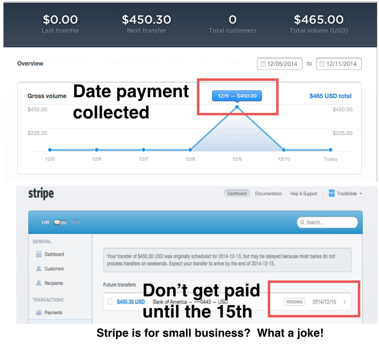 @stripe What a joke! Cash flow is critical to small businesses! 7 days to transfer money unacceptable! #keepmymoneypic.twitter.com/FuHK5zTwZu