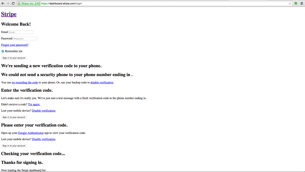@stripe What is up with the login/dashboard? I am unable to login. Anyone else?pic.twitter.com/N1wW3gIrUm