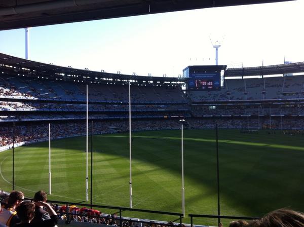 At the footy to watch Hawthorne kick some butt! Still freaks me out their team song is Yankee Doodle Dandy!pic.twitter.com/THHFhO6X