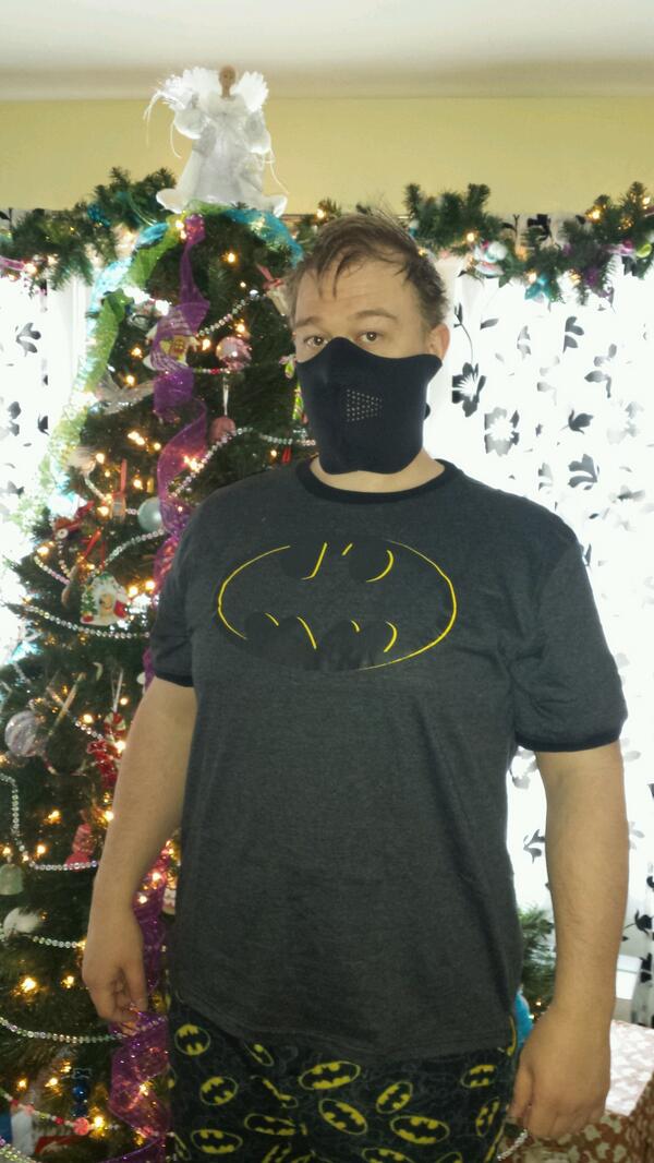 Here is @psynister combining two presents for awesome. Batman pj's & cold weather running mask = #batninjapic.twitter.com/pW7HxxLLky