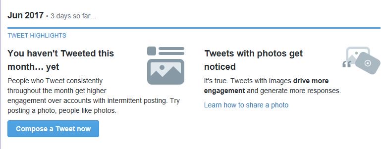 Accidentally hit Twitter analytics. Apparently I haven't tweeted in June.pic.twitter.com/SKHJY7IQF1