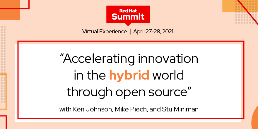 #technology. Discover your potential and future#innovations during Mike Piech (@mpiech),@Stu Miniman, and Ken Johnson’s session at#RHSummit#Virtual Experience on April 27–28. Get the details: https://red.ht/3qKL2OU pic.twitter.com/HQI914vzuJ