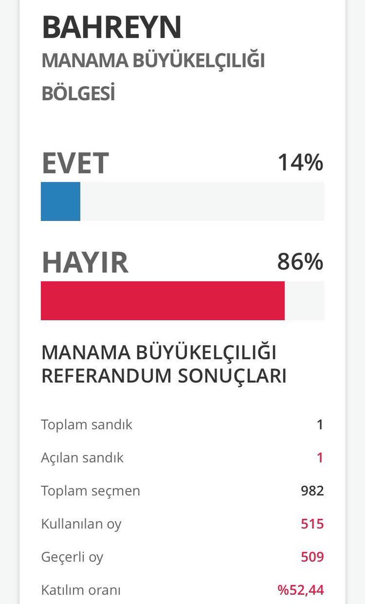 Interesting to compare. Turks living in Gulf countries vote majority No. Turks living in Western Europe vote mainly Yes.