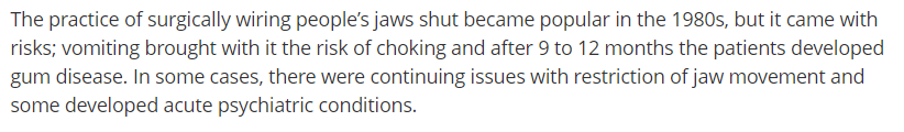 Not even 40 or 50 years ago. I remember someone on 1 of the first seasons of Real World had her jaw wired shut.