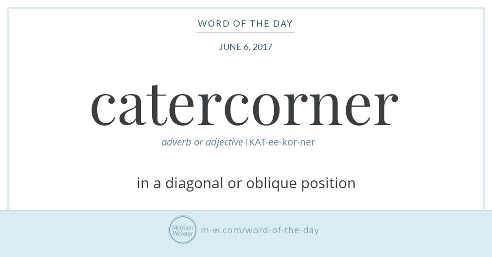 #WordOfTheDay is 'catercorner' http://s.m-w.com/2p2WmJS pic.twitter.com/MHAzaWdGQ3