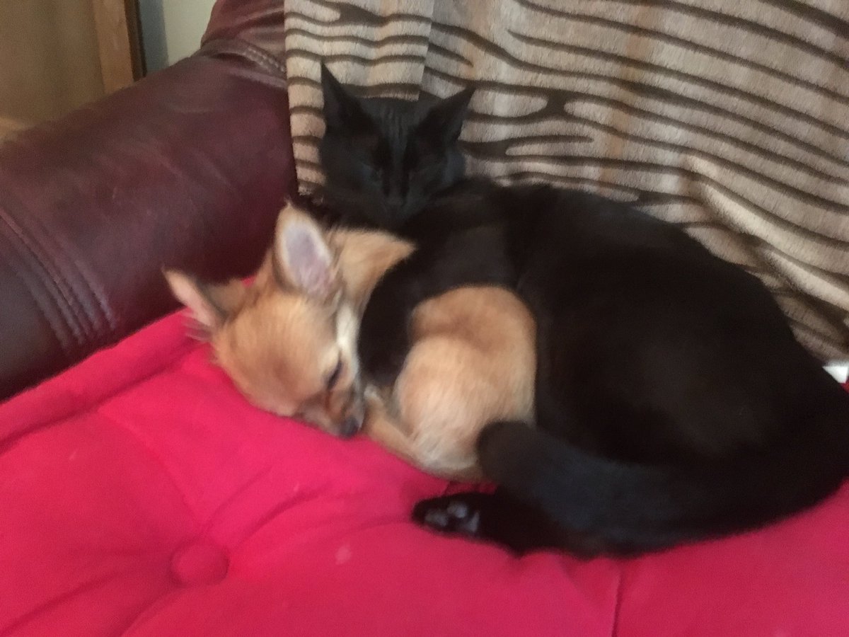 Our Romanian Cat Ruby looking after our Chihuahua Puppy Willow.pic.twitter.com/ziufOBJ88N