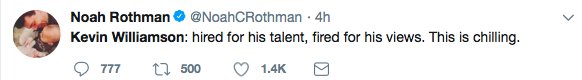 Notice that none of these conservative pundits decrying Kevin Williamson's firing actually want to acknowledge the "views" that lead to it.pic.twitter.com/gsXED5Sazx
