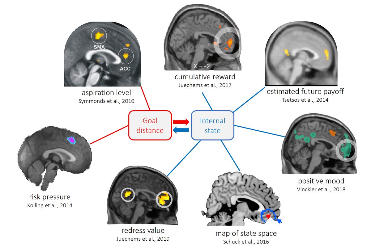 Distance to goal signals in a wider sense have recently been reported by us and many others across a range of regions in the medial prefrontal cortex, indicating that these signals are a ubiquitously tracked quantity in humans. 6/13pic.twitter.com/jKR6znuWZB