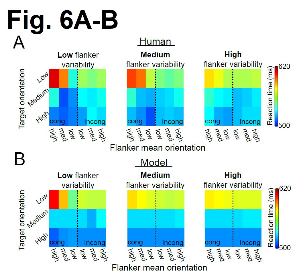 One key feature of our model is that the degree of neural sharpening depends on info variability. Therefore, we devised a flanker task (pps respond to target tilt, ignoring the irrelevant flankers) where the surrounding flankers can be non-identical. [13/n]pic.twitter.com/GGHwJD0kBR