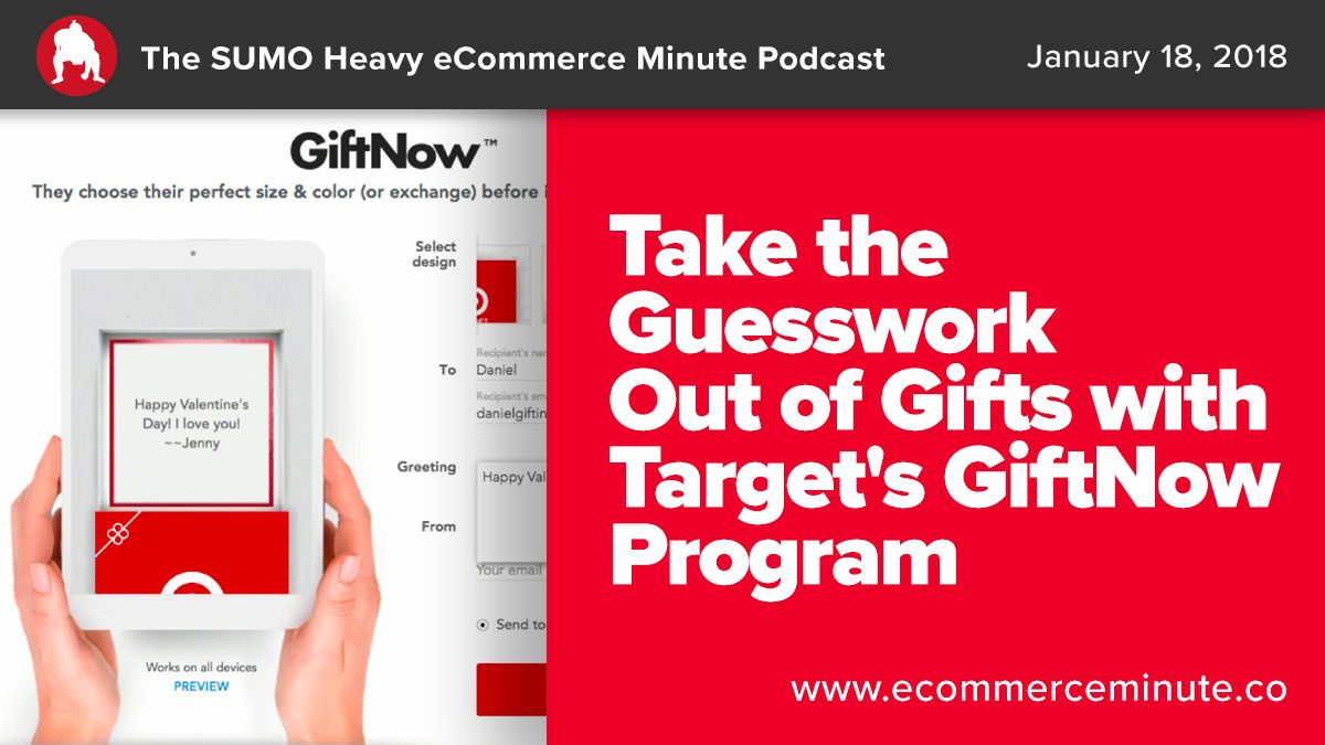 The @sumoheavy #eCommerce Minute for 01.18.18: Take the Guesswork Out of Gifts with Target's GiftNow Program With @Target's GiftNow you'll be able to send the recipient a gift that they'll be able to personalize. 🔈 Listen here: http://bit.ly/2mNfrwZ pic.twitter.com/iD4tDjkUxO