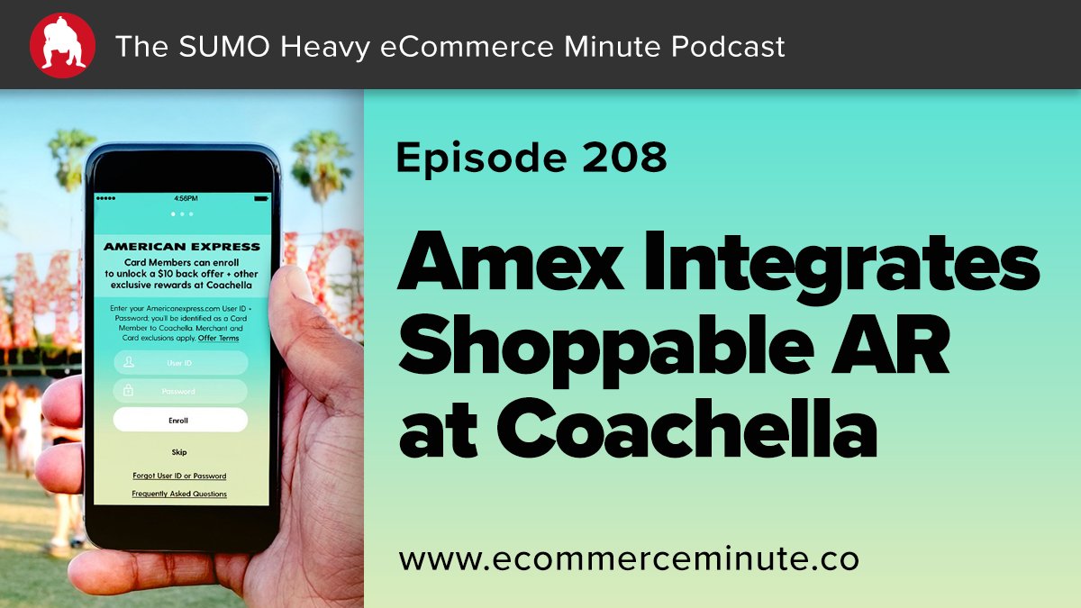 The @sumoheavy #eCommerce Minute Podcast // 208: "Amex Integrates Shoppable AR at Coachella" @AmericanExpress created a shoppable AR component for the @coachella Music Festival in the Coachella app. 🔈 Listen here: http://bit.ly/2DbDDzk  #Coachella2018pic.twitter.com/FPX3MVogkI