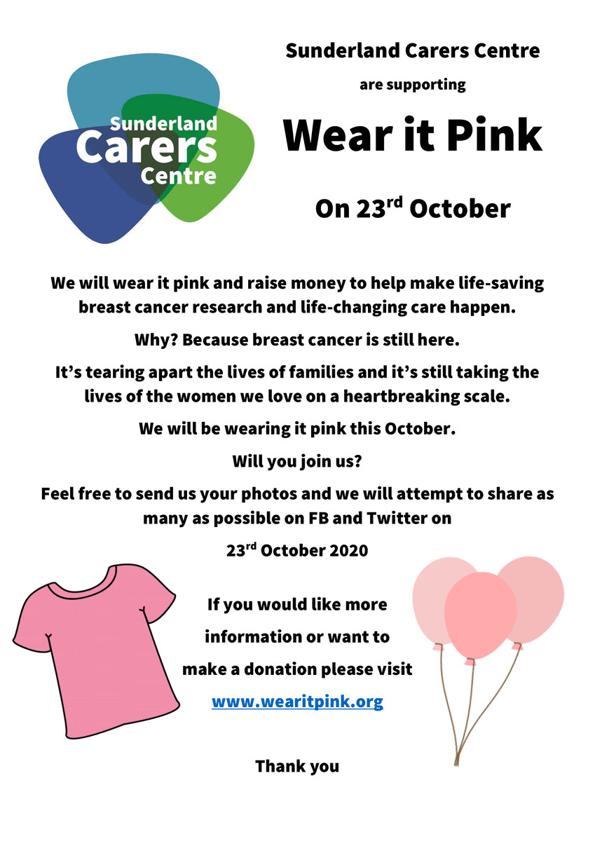 We are supporting "Wear it Pink" this Friday as October is Breast Cancer Awareness month. If you would like to join us in our support please see below