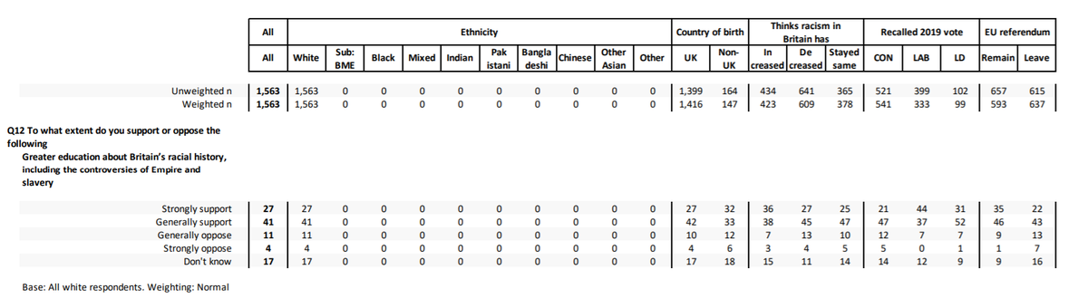 "Greater education about Britain’s racial history, including the controversies of Empire and slavery" is idea with broadest consensus - across ethnic groups and political viewpoints in this ITV/@NCPoliticsUK poll White 68-15 (+53) Ethnic minority 68-15 (+53) 17% don't know pic.twitter.com/n0xQ8ptWd6