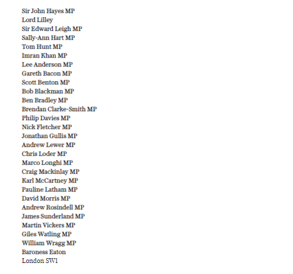 This letter is the first public activity of the Common Sense Group of Conservative MPs and peers, "formed to speak for the silent majority of voters tired of being patronised by elitist bourgeois liberals whenever issues such as immigration or law and order are raised'pic.twitter.com/feBGENmqD4