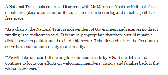 Telegraph story - The government echoes some of the criticisms, but isn't intending a review - The National Trust says it "will take on board all the helpful comments by MPs", while maintaining its independence from government https://twitter.com/christopherhope/status/1326615993276387328 …pic.twitter.com/g9iyu2PuZ0